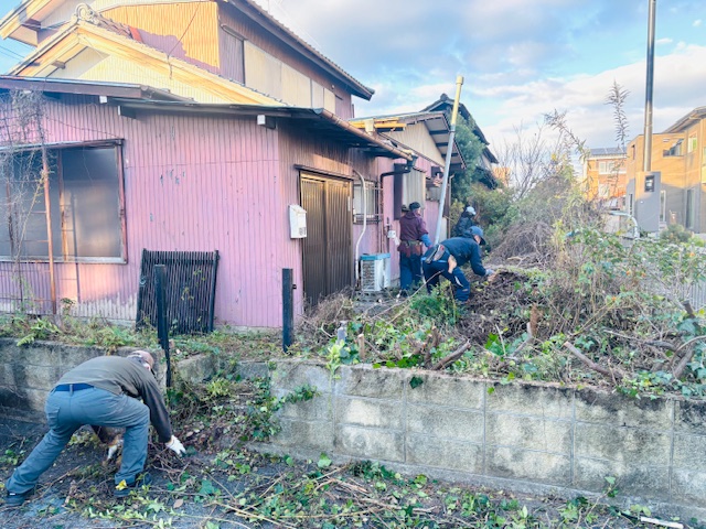 隣地沿いの道路も狭く、ゴミの片付けに手間がかかりましたが、無事にきれいに終わらせることができました。