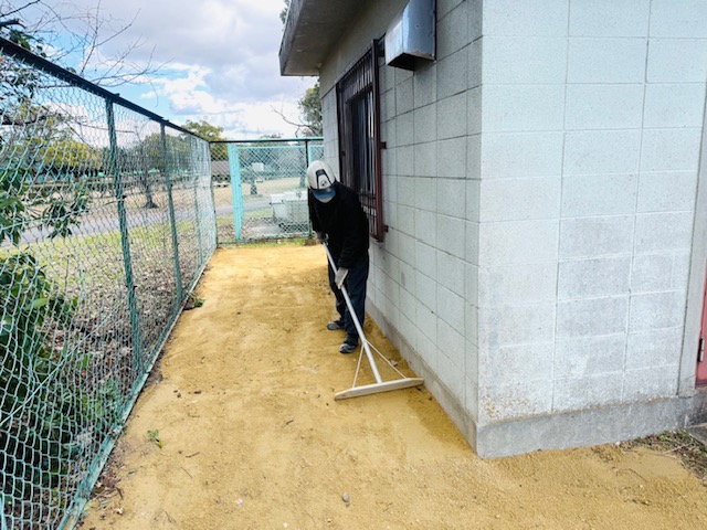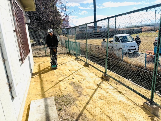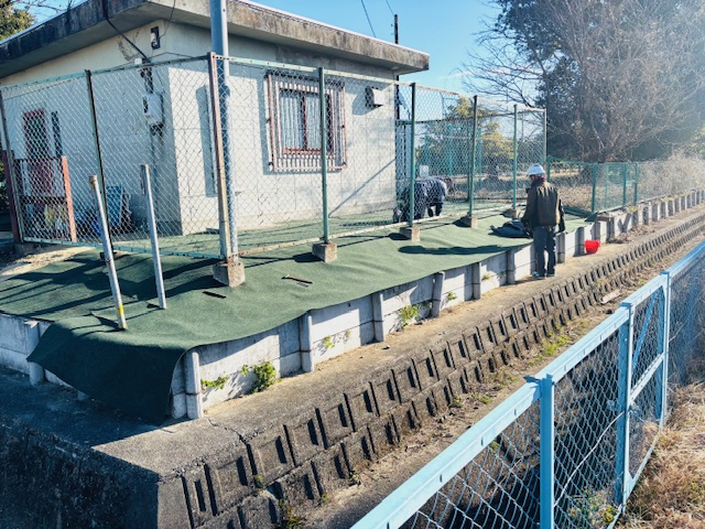 まずは、草刈りと不要な樹木の伐採処分からはじめ、その後山砂で不陸整正を行いました。