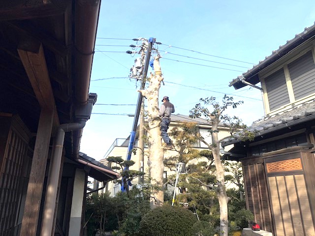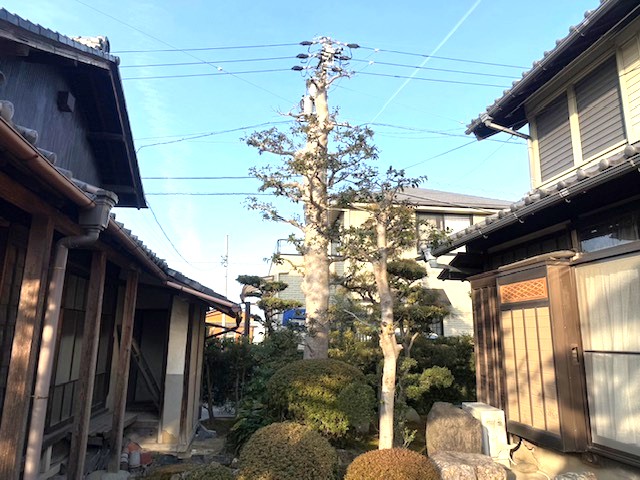 毎年、弊社がお庭全体の剪定はさせていただいているのですが、登るたびにすごく揺れるという従業員の声もあり、残念ですが伐採させていただくようにしました。