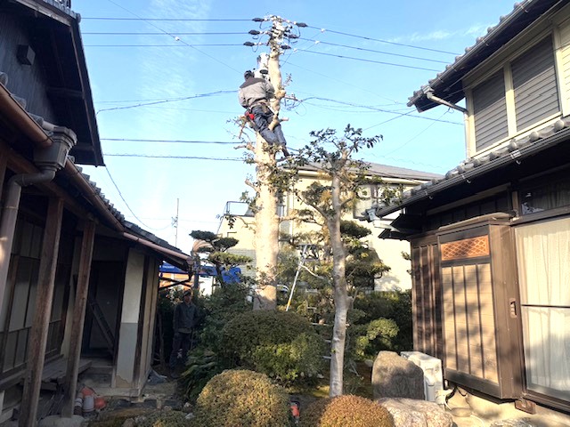 一宮市大和町戸塚地内にあるS様宅のクロガネモチが古木により、危険とみなし伐採することを施主様と協議のうえ決めました。